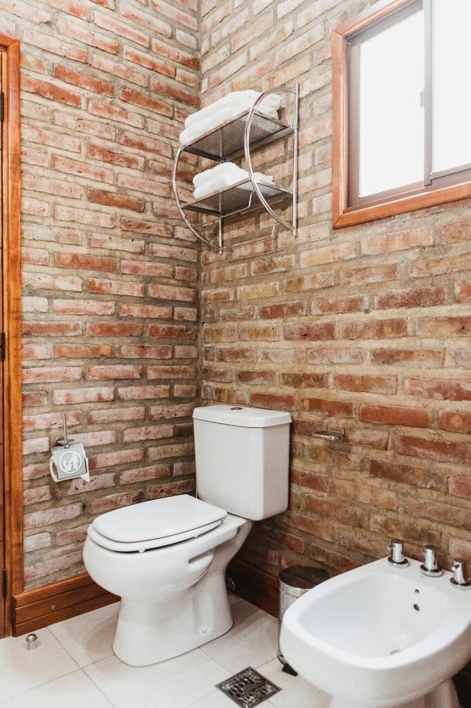 Baño con inodoro, bidet, lavamanos y ducha doble
